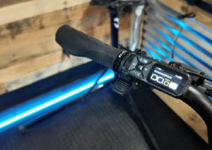 The all-in-one control unit sits conveniently near your left handlebar grip, giving you easy access to pedal assist adjustments.