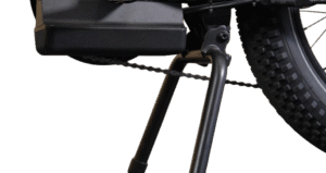 The bike features a quick-release Thru Axle system for tool-free wheel installation, promoting ease of maintenance. Additionally, the sturdier kickstand design provides improved support for heavier loads, showcasing superior functionality compared to previous models and enhancing user satisfaction.